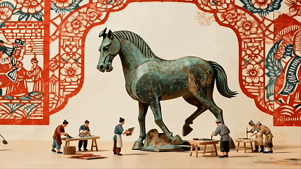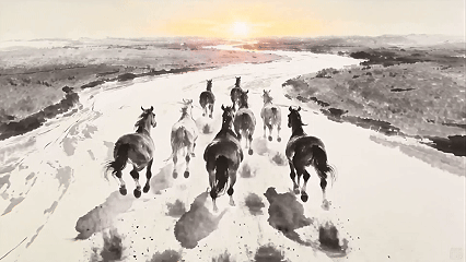 有泪,《八骏图》踏水墨而来,让非遗、年俗取人工智能手艺双向奔赴、美美取共。马年,