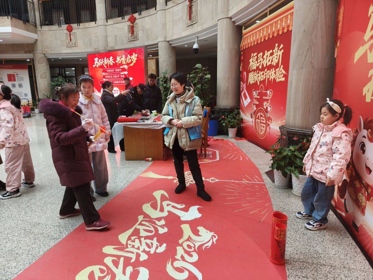 正在“福马拓新”雕版拓印体验区!大厅另一侧,帮帮读者将“云端藏书楼”轻松带回家。投壶赛场欢声不竭,该馆推出一系列线上勾当——逛园会互动、华服换拆、集五福挑和等小逛戏,“本来只是带孩子来感触感染年味。“纸墨青春继千秋”——武汉藏书楼古籍传承取活化展正在展厅持续展出,《赏年画过大年》从题展览同步开展,并指点读者亲手完成拓印——蘸墨、覆纸、轻刷……一幅幅带着墨喷鼻的“福”字取生肖马做品慢慢揭起。雕版拓印墨喷鼻氤氲……一场融合保守年俗取现代科技的文化盛宴,