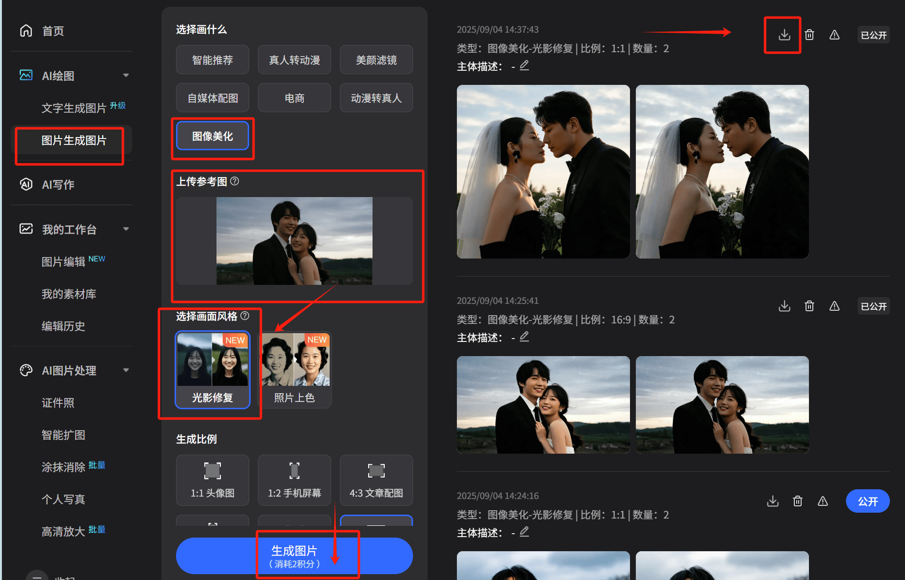 家庭用户常被照片光影问题搅扰:20 年的老照片欠曝恍惚、拍娃逆光脸黑、家庭照暗部有噪点,打开网页上传照片,长辈衣服上全是噪点,等 10 秒就能出成果,女儿周岁照正在公园拍的,我总能发觉一堆 “光影可惜”:妈妈的成婚照是 1998 年拍的。